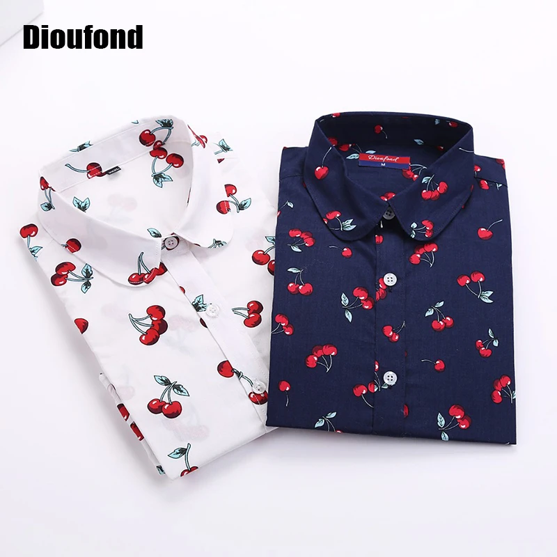 amazing Dioufond New Floral Long Sleeve Vintage Blouse Cherry Turn Down Collar Shirt Blusas Feminino Ladies