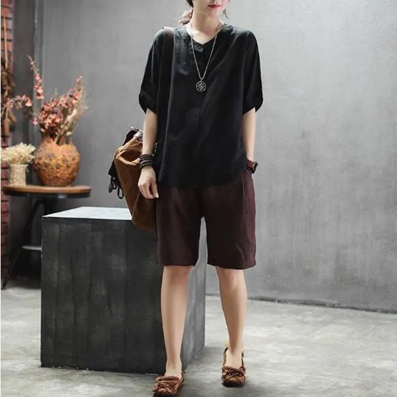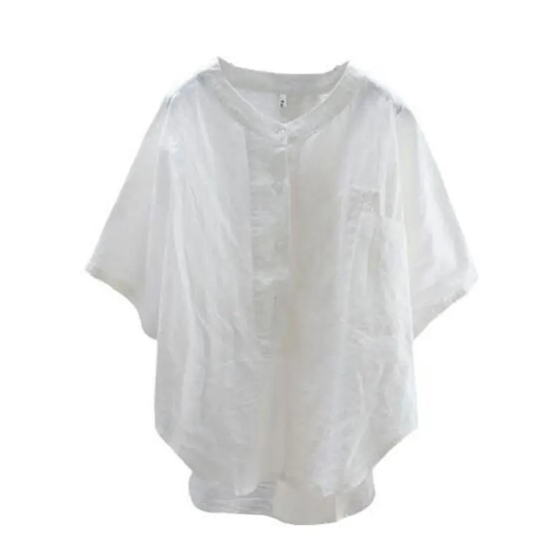 New F&je Summer Women Shirts Plus Size Loose O-neck Casual Ladies Tops Batwing Sleeve Cotton Linen Lady