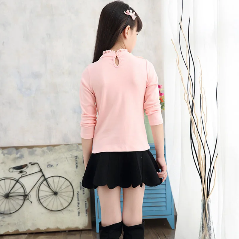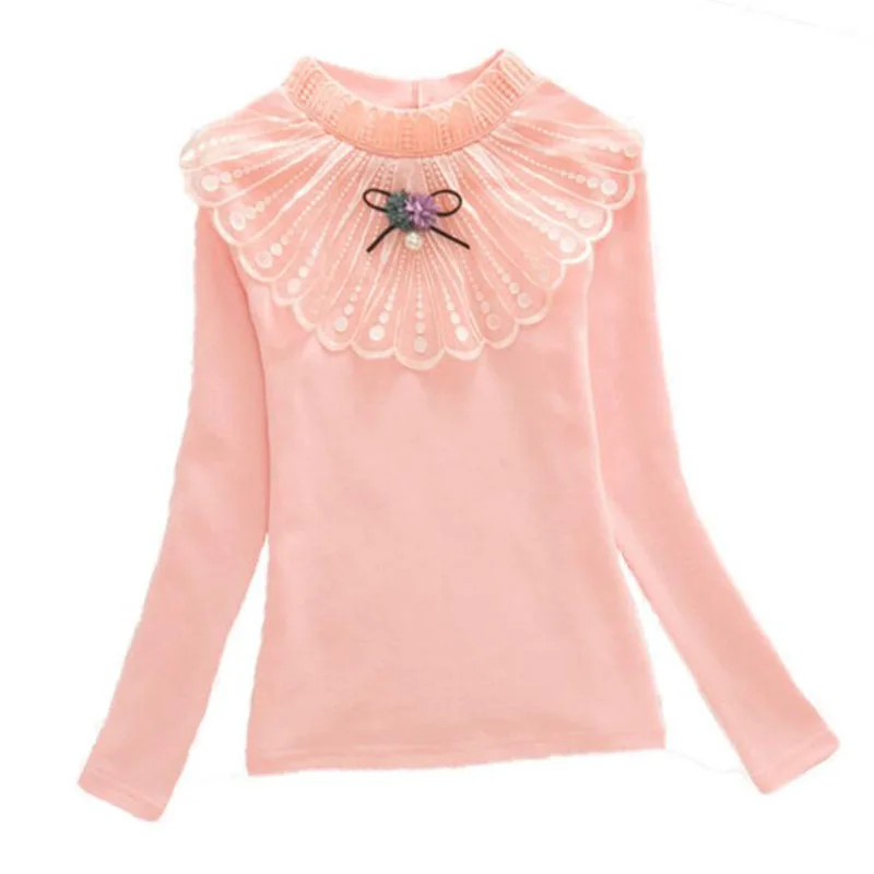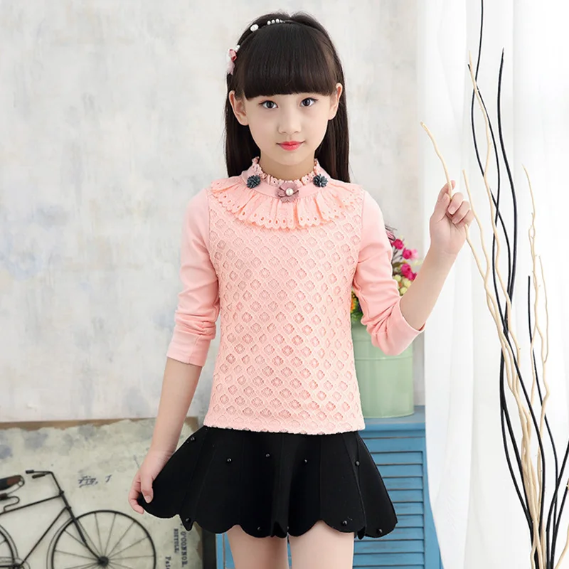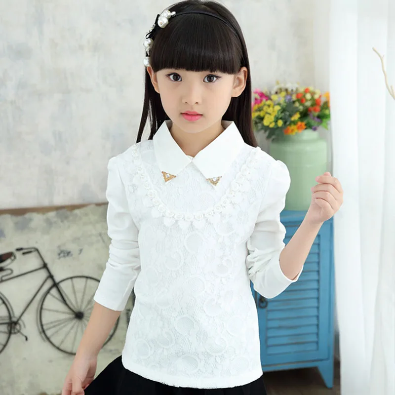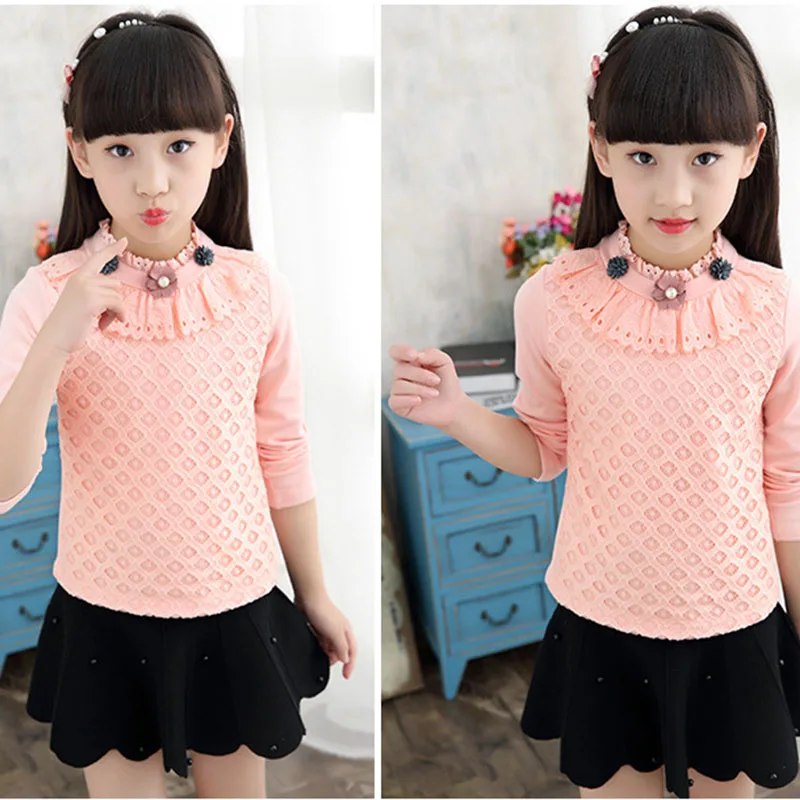 Best lememogo Autumn Cotton Girls Shirts Tops Children Long sleeves Lace Blouse Kids Keep warm Shirt Top