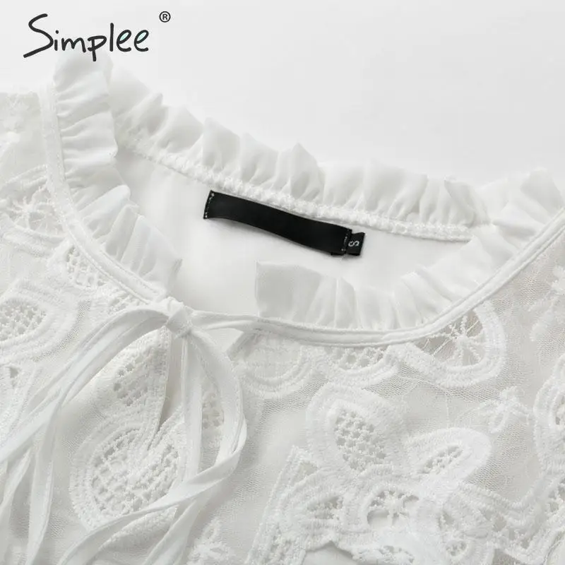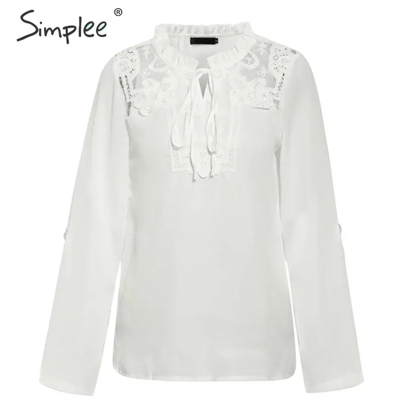 awesome Simplee Elegant lace up chiffon blouse women Ruffled lace embroidery female shirts Long sleeve autu