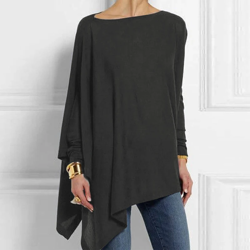 New 4XL 5XL Women Plus Size Tunic Tops Irregular Hem Loose Shirts Casual O Neck Long Sleeve Blouse Shir