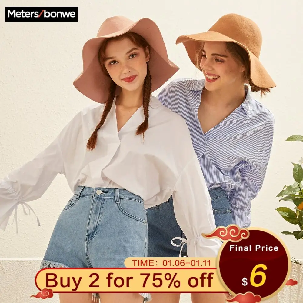 discounted Metersbonwe Long-Sleeved Blouses For Women'S Spring And Autumn Belted Shirts Sweet Girl's Blouse