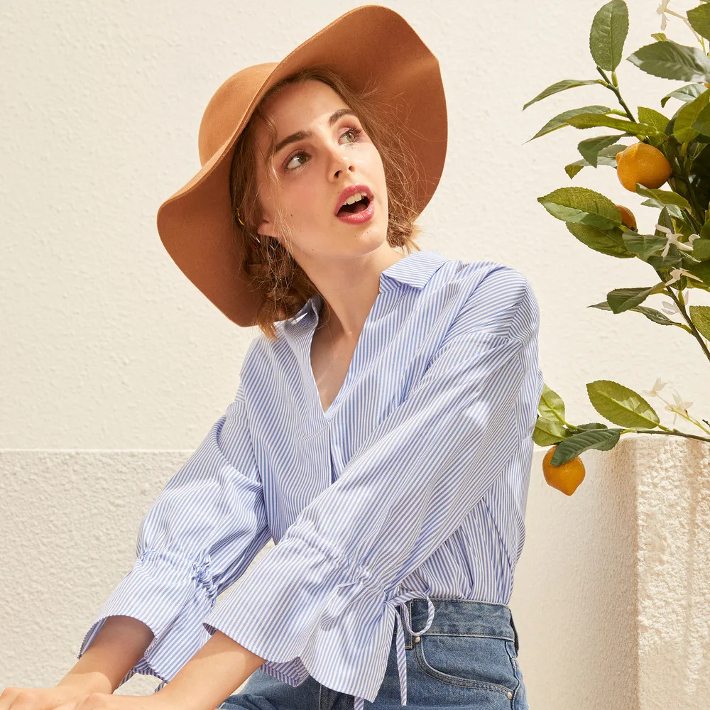 Greatest Metersbonwe Long-Sleeved Blouses For Women'S Spring And Autumn Belted Shirts Sweet Girl's Blouse