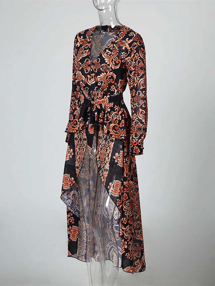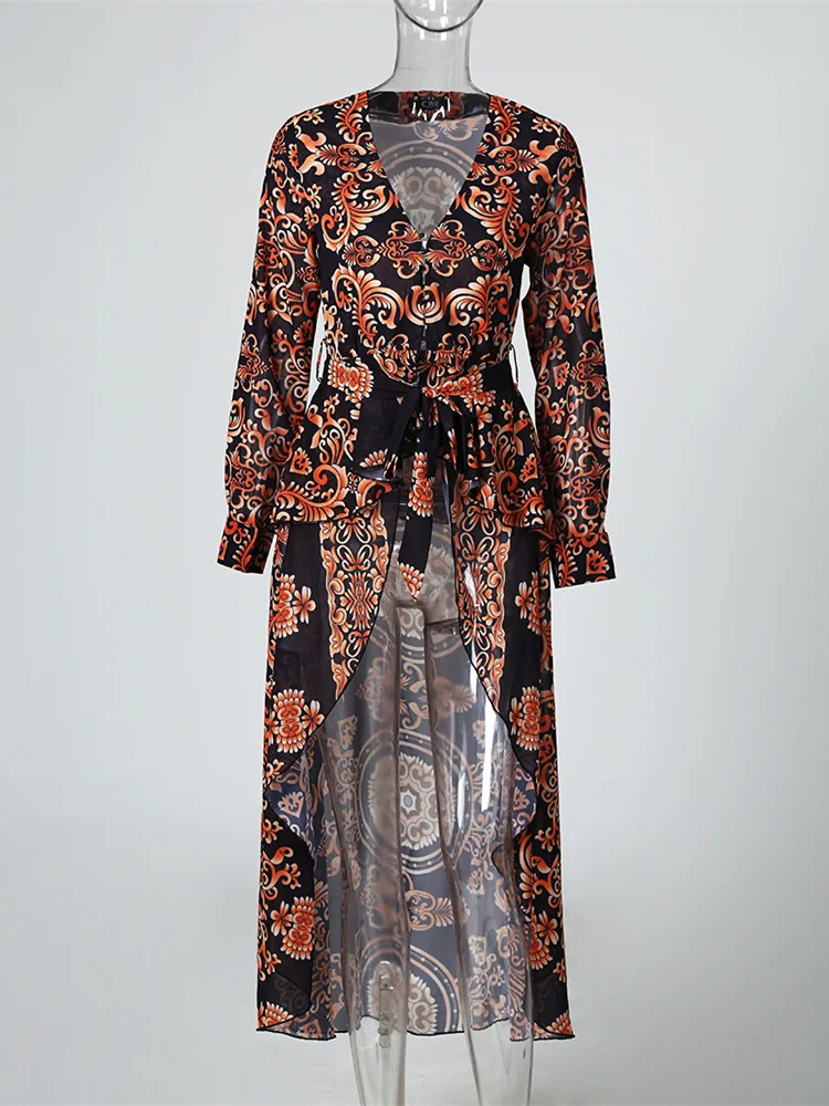 incredible 2020 Autumn Women Elegant V-Neck Boho Vintage Long Top Female Stylish Casual Shirt Baroque Print Lo