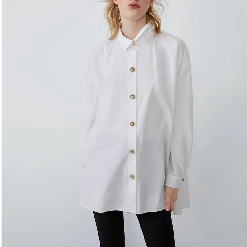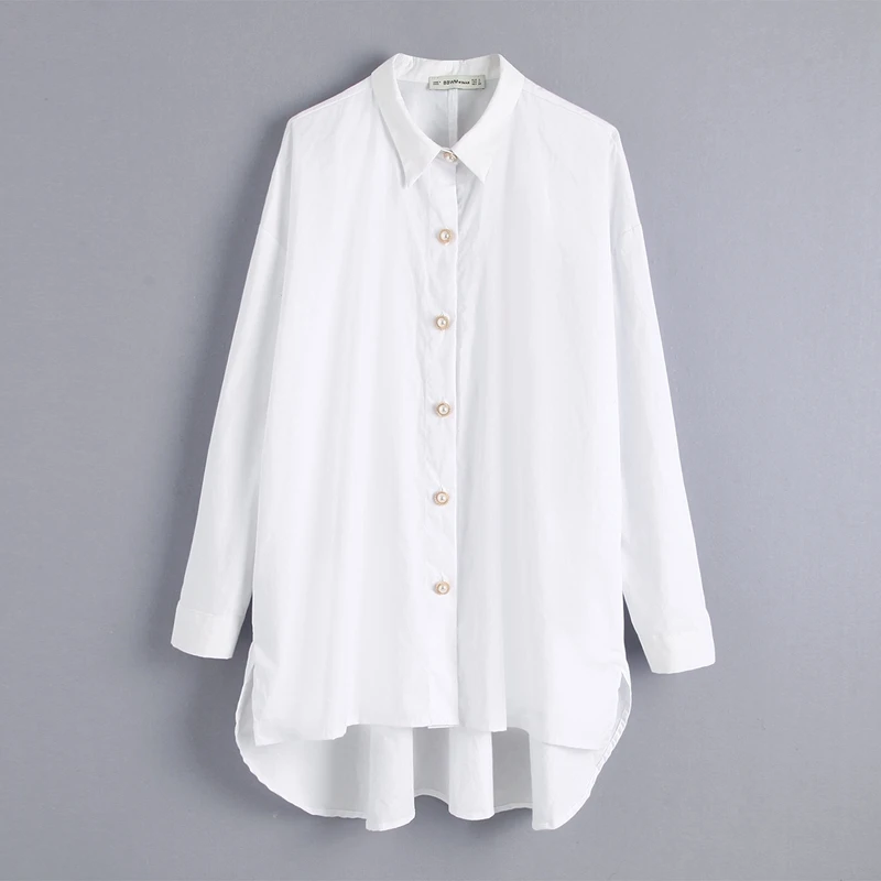 lower price Women Casual Loose Cotton Blouse Plus Size Buttons Long Sleeves Turn Down Collar Long Blouse Female