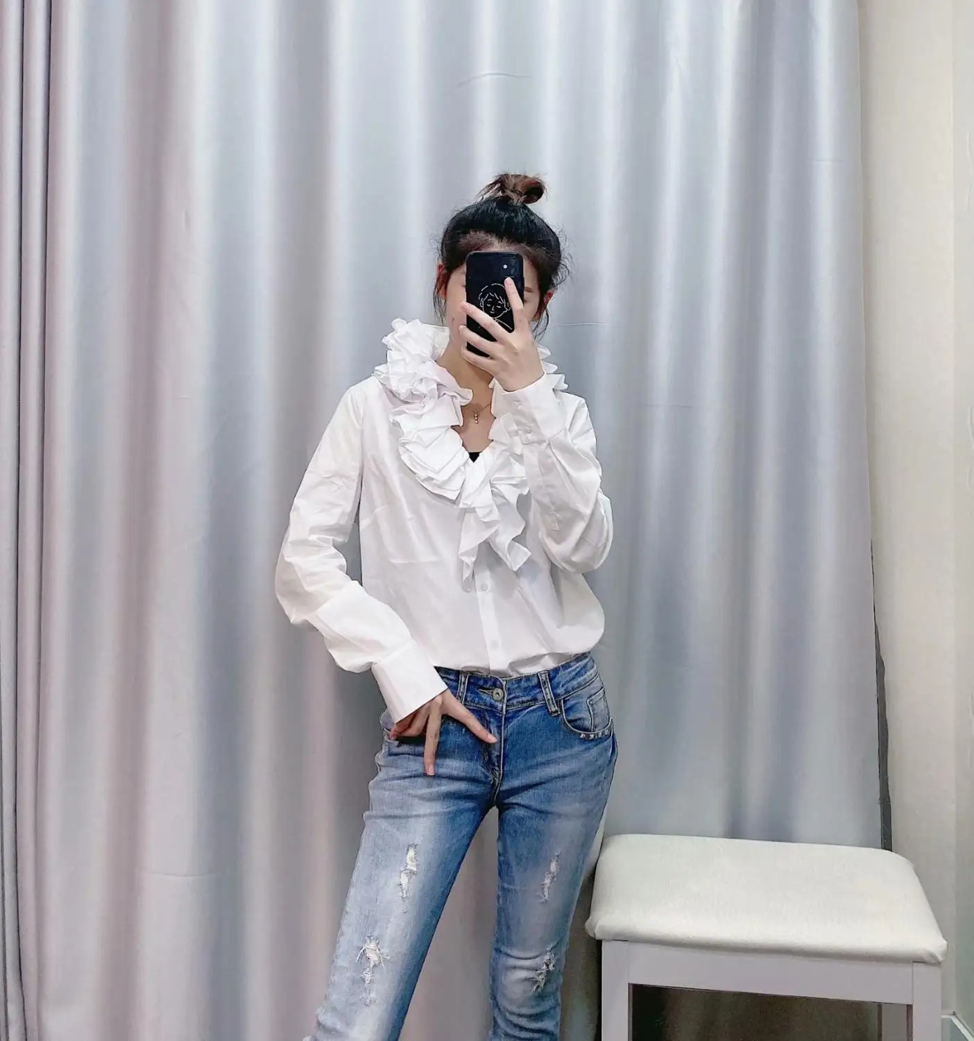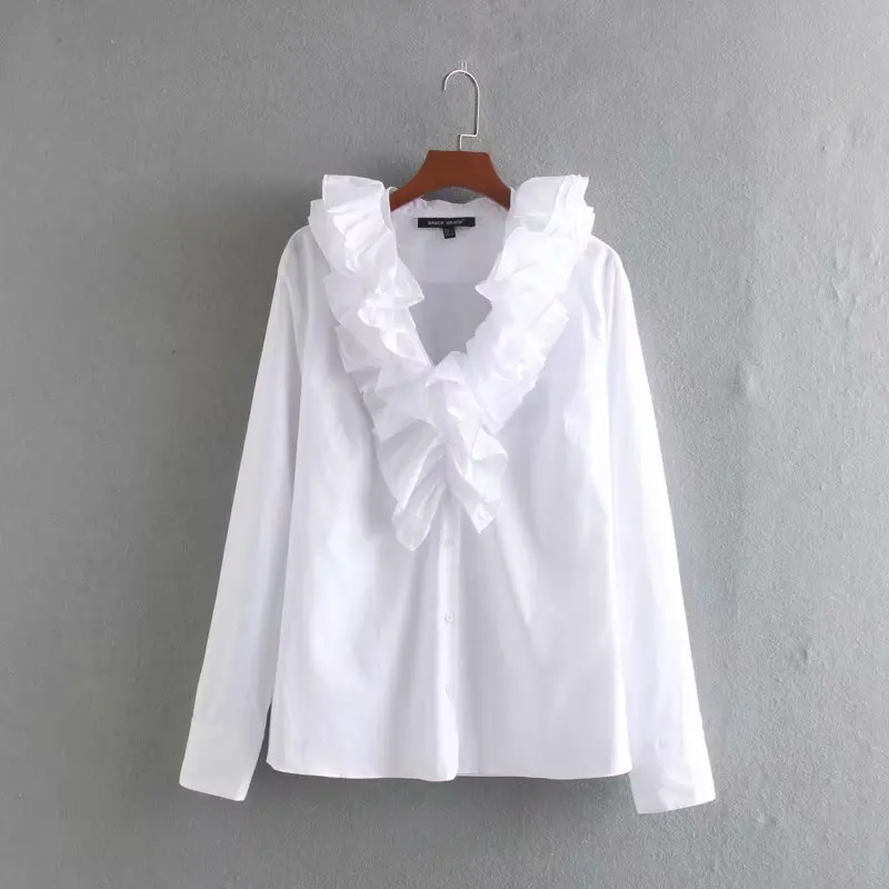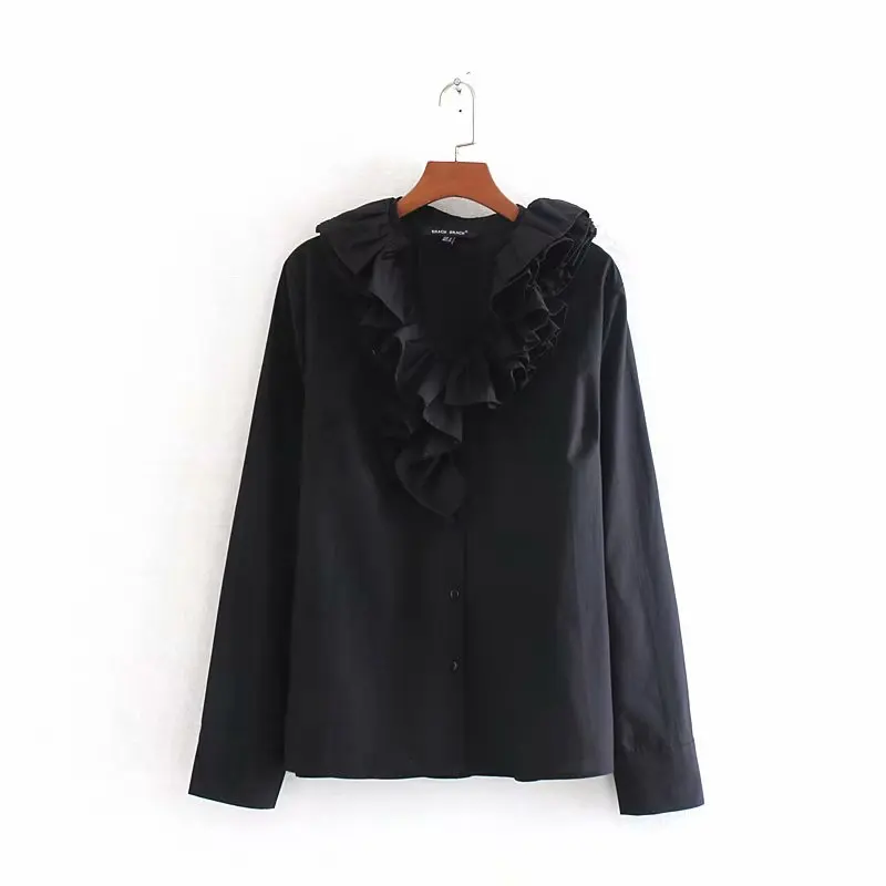 lower price women high street v neck cascading ruffles black white blouse female casual shirt chic femininas lo