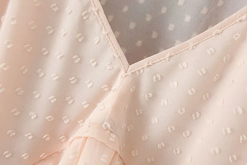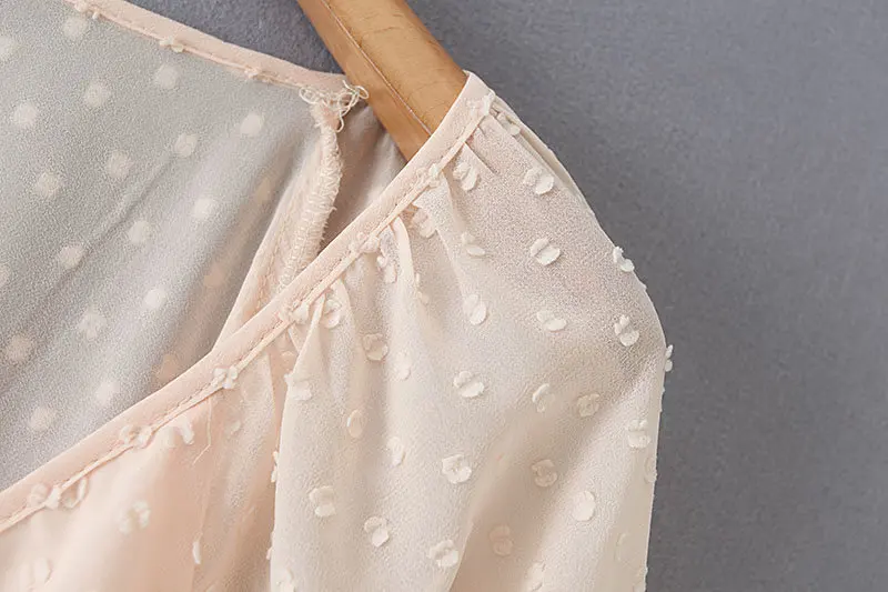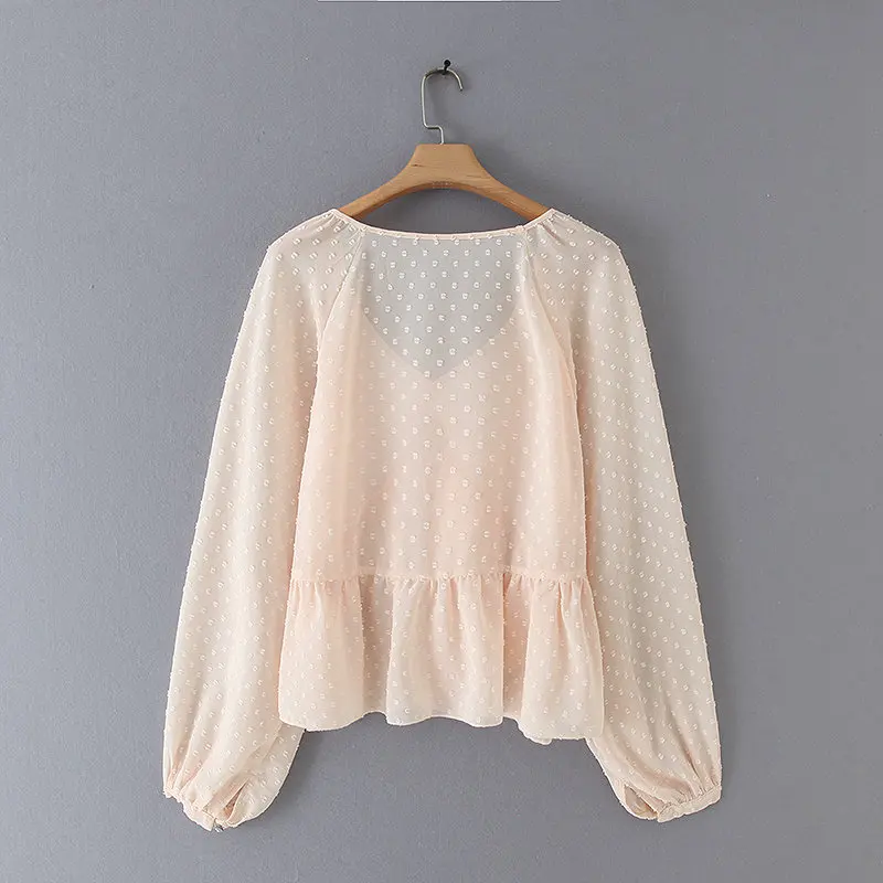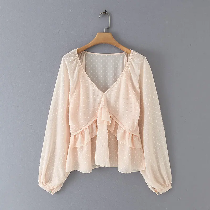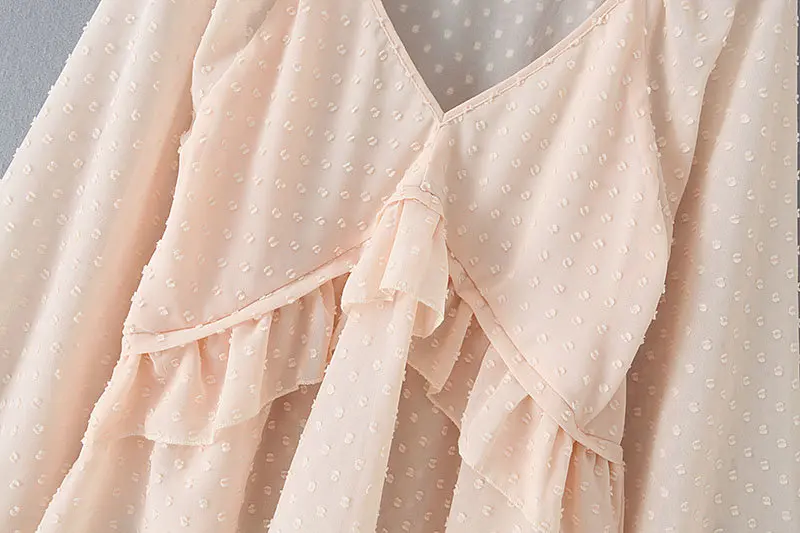 Most effective new women v neck dots design cascading ruffles Shirts blouses women lantern sleeve chiffon roupas f