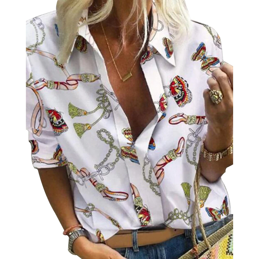 lower price Chain Print Blouse and Shirt Women Long Sleeve Vintage Shirt Womens Tops and Blouse for Women Plus