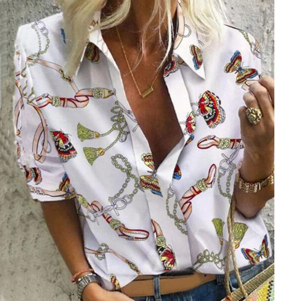 New Chain Print Blouse and Shirt Women Long Sleeve Vintage Shirt Womens Tops and Blouse for Women Plus