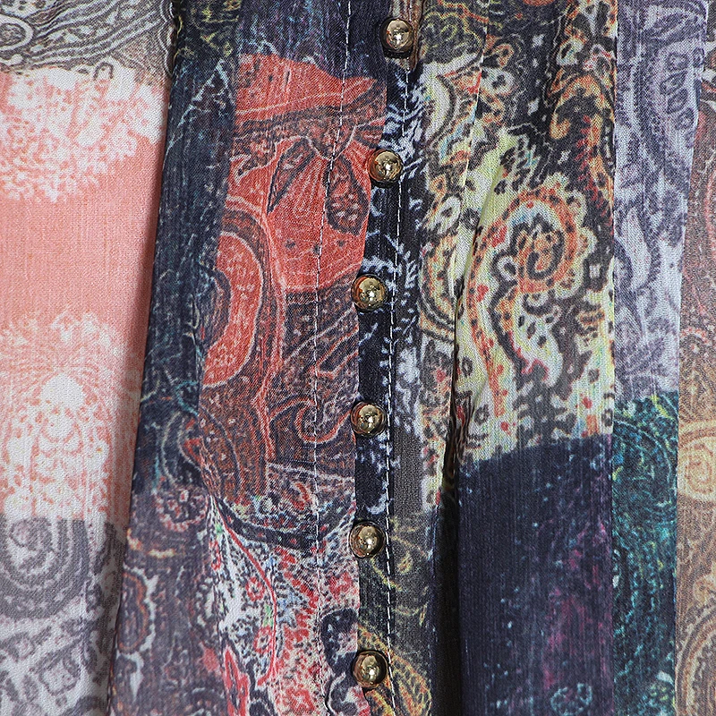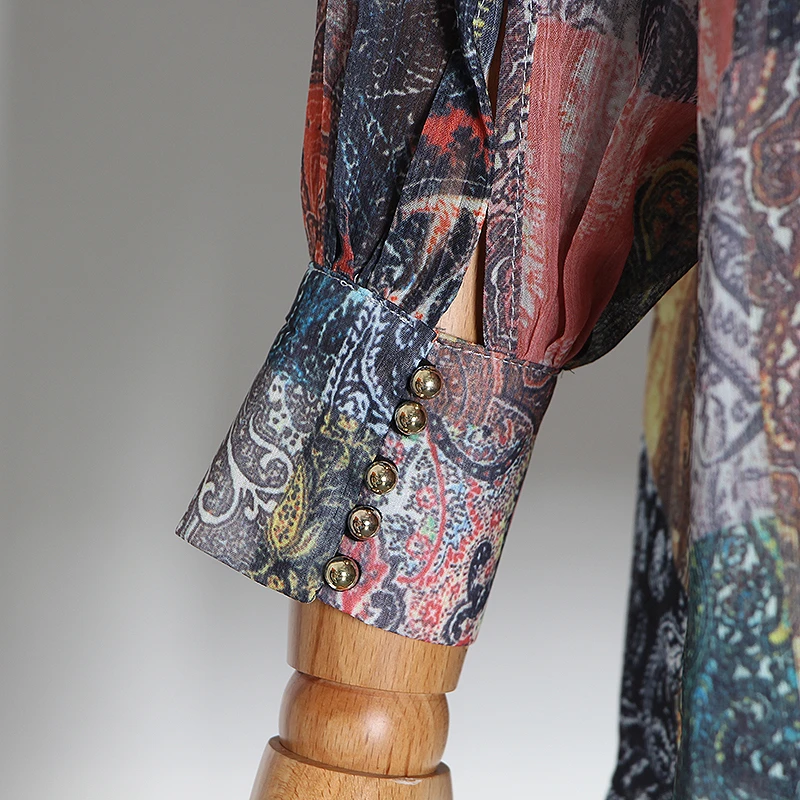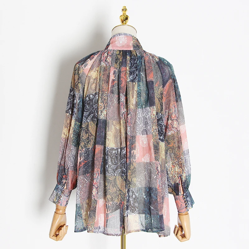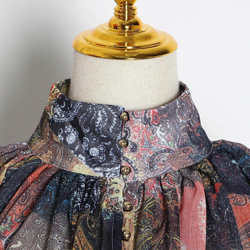 New TWOTWINSTYLE Vintage Print Long Lantern Sleeve Stand Neck Single Breasted Blouse Women Shirt 2019 F