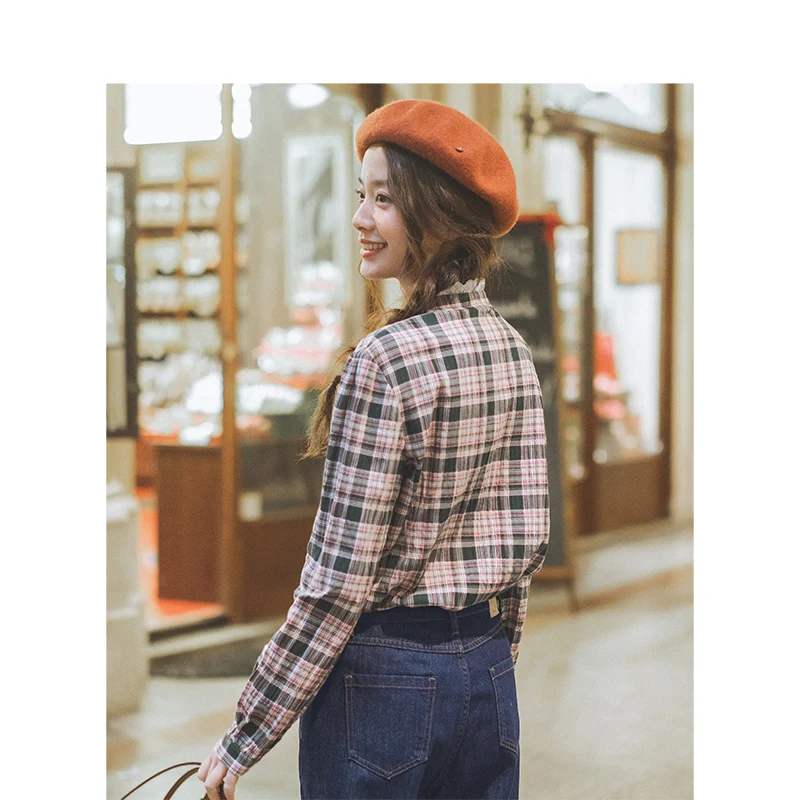 INMAN Spring Autumn 100%Cotton Retro Plaid Turn Down Collar Slim Literary Elegant All Matched Women Blouse,INMAN 2019 Autumn New Arrival 100%Cotton Retro Plaid Lace Turn Down Collar Flare Sleeve Sweet Cute Women Blouse, INMAN 2019 Autumn New Arrival 100%Cotton Retro Plaid Lace Turn Down Collar Flare Sleeve Sweet Cute Women Blouse