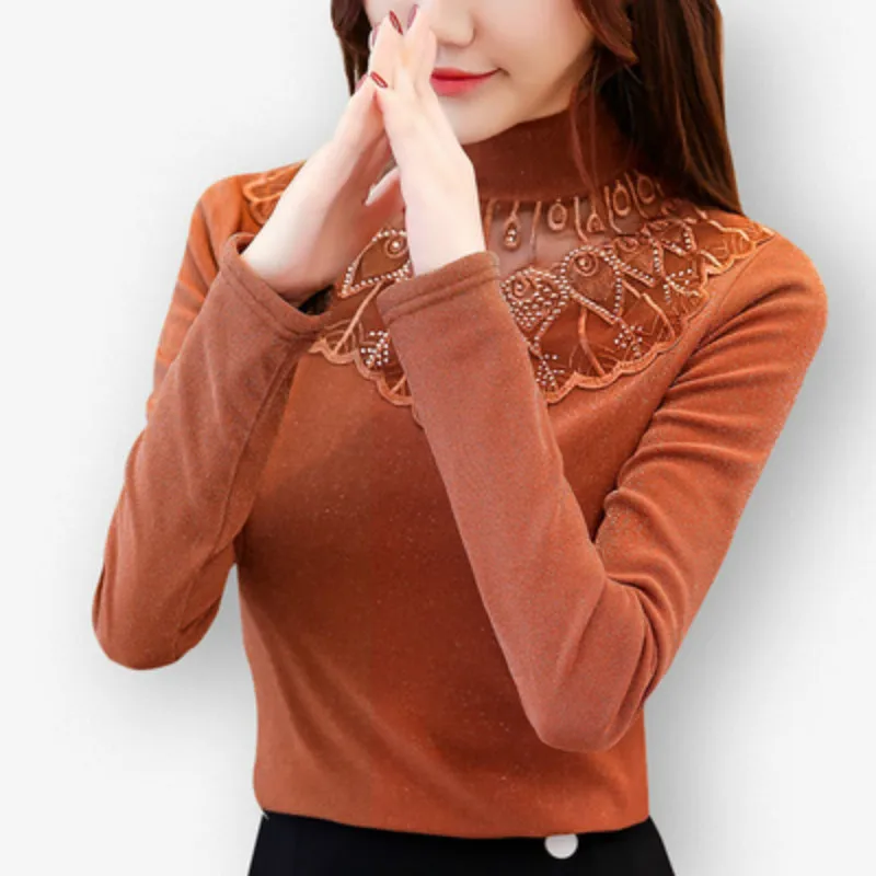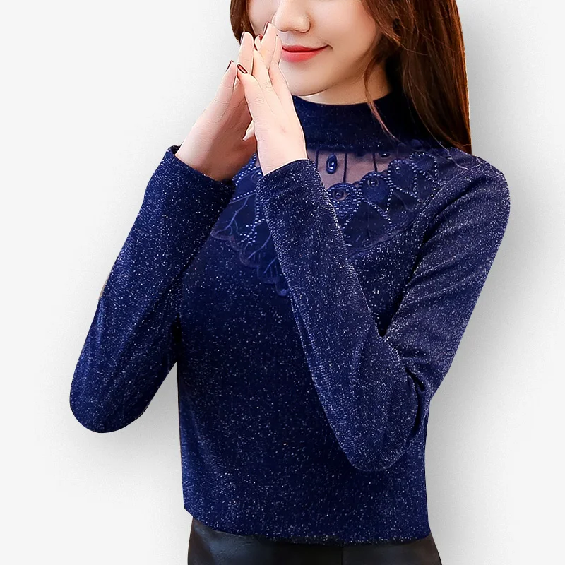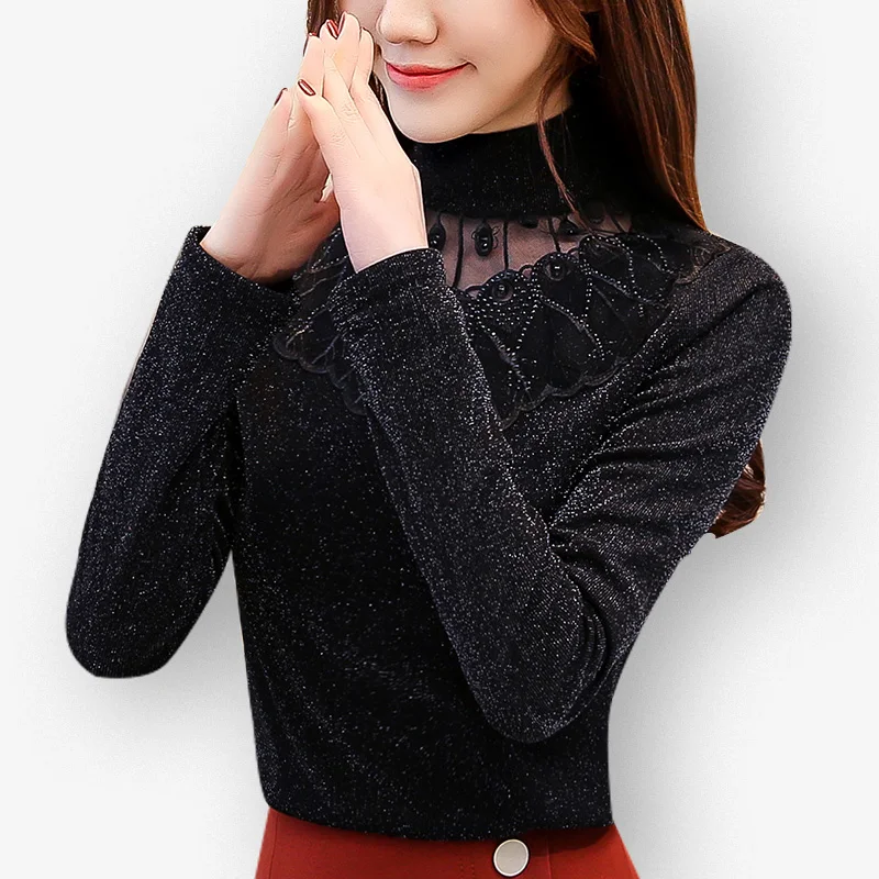 New 2019 New Autumn Winter Women Bottom Lace Mesh Diamonds Blouse Shirt Female Slender Warm Long Sleeve