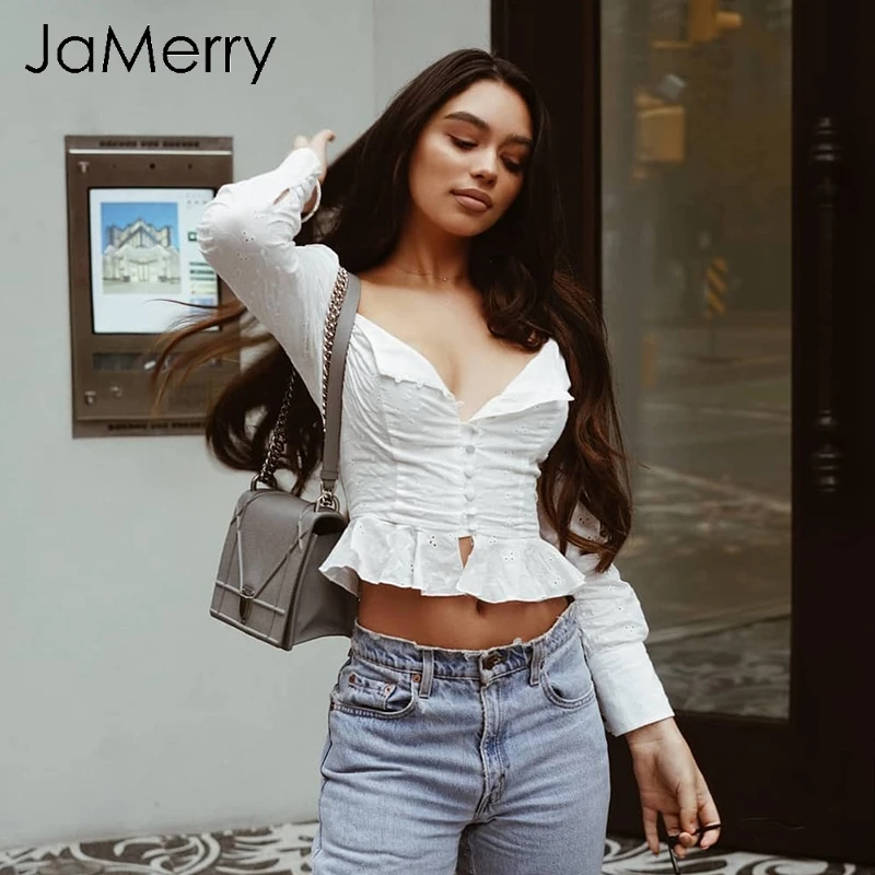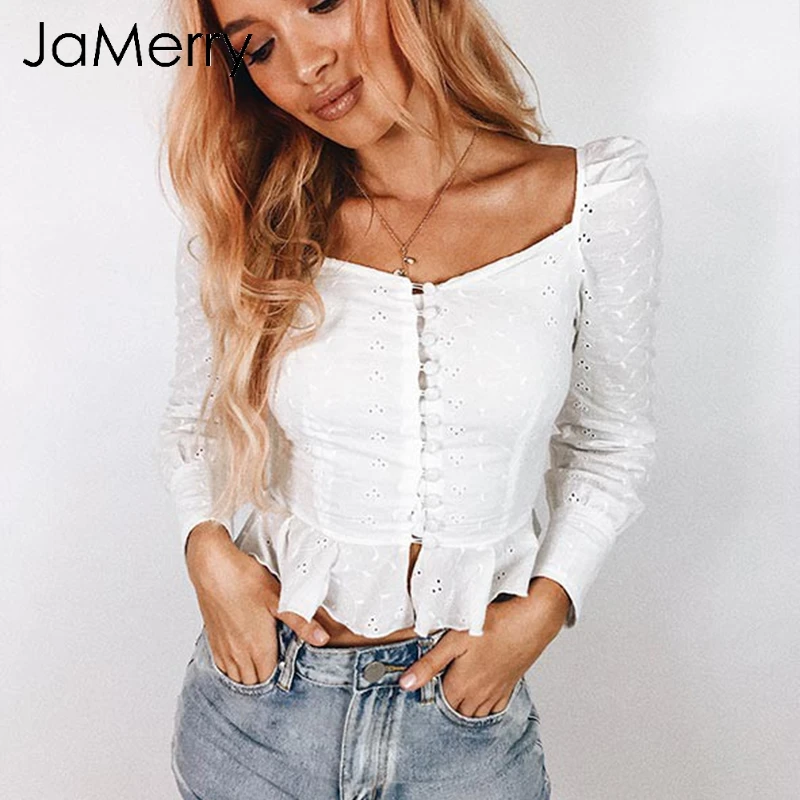 JaMerry Vintage sexy chiffon polka dots ruffle blouse shirt Casual square collar lantern sleeve blouse Female elegant slim top,JaMerry White french ruffle lantern sleeve square shirt Women crop blouse top Korean style spring cropped blouse tops blousees, JaMerry White french ruffle lantern sleeve square shirt Women crop blouse top Korean style spring cropped blouse tops blousees