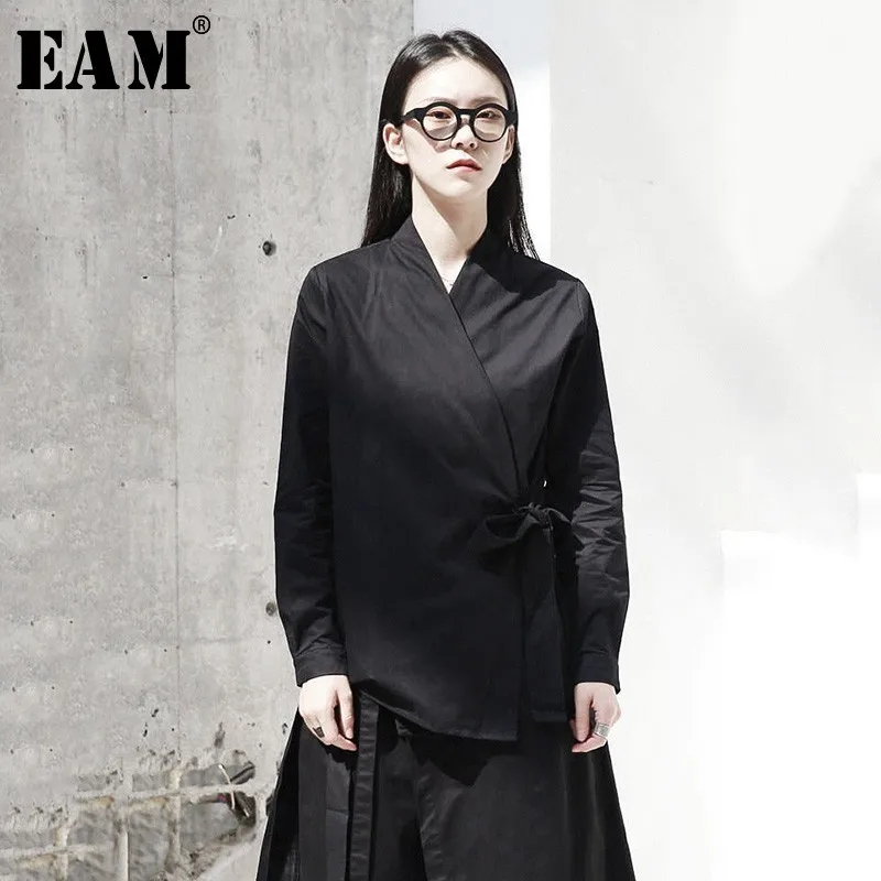[EAM]2020 New Autumn Winter V-collar Long Sleeve Black Loose Bandage Irregular Loose Brief Shirt Women Blouse Fashion Tide JL452,[EAM] Women Black Bandage Blouse New Stand Neck Long Sleeve Loose Fit Shirt Fashion Tide All-match Spring Autumn 2020 1B210, [EAM] Women Black Bandage Blouse New Stand Neck Long Sleeve Loose Fit Shirt Fashion Tide All-match Spring Autumn 2020 1B210