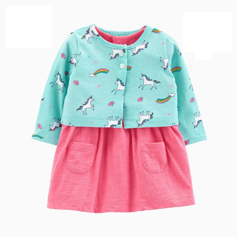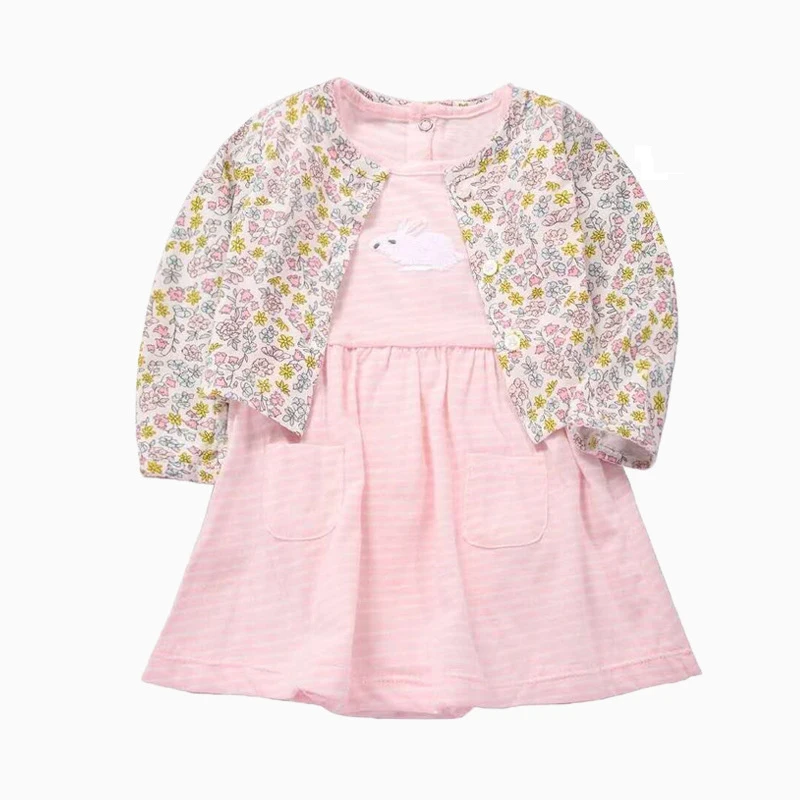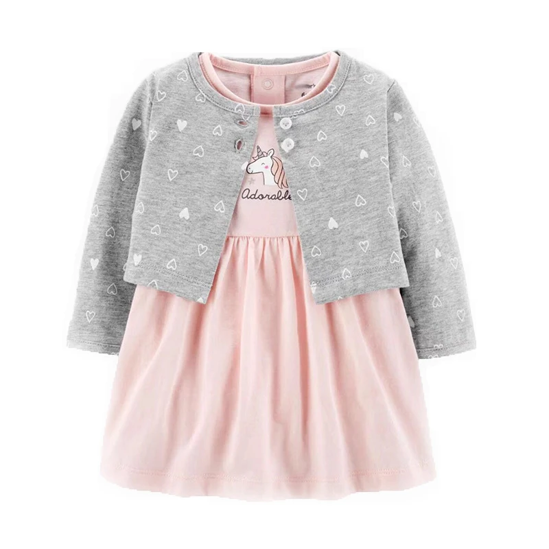 astounding Baby Girl Bodysuit Dress Cute Soft Cotton Long-Sleeved Cardigan +Short SLeeve Dress 2 Pieces Infant