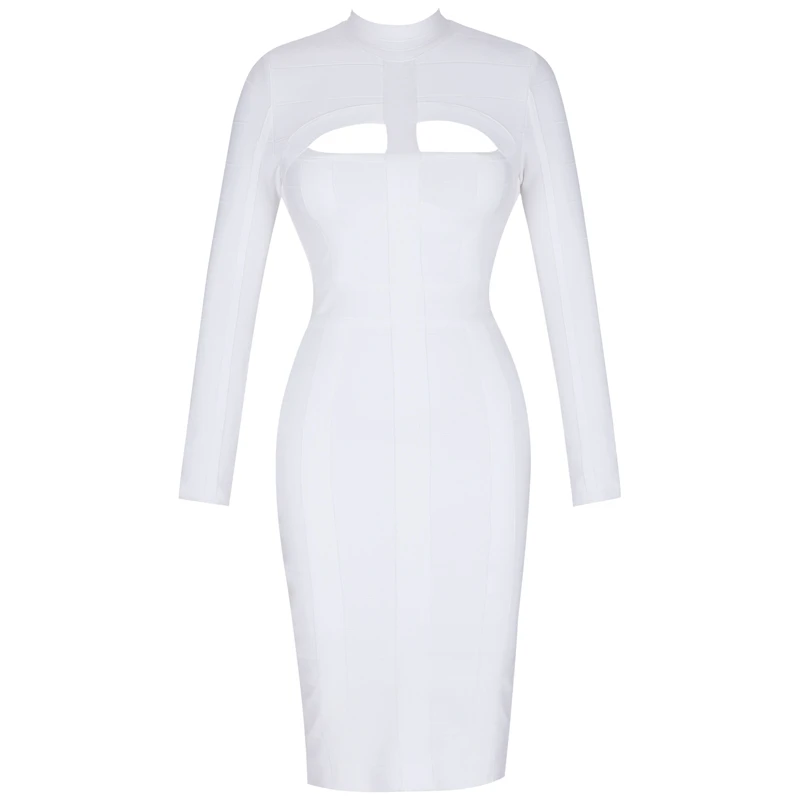 remarkable Ocstrade Women White Bandage Dress Bodycon 2019 New Arrivals Sexy Cut Out High Neck Long Sleeve Par