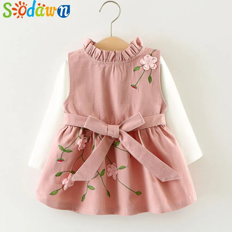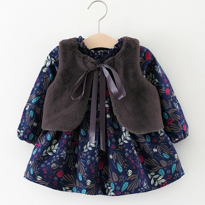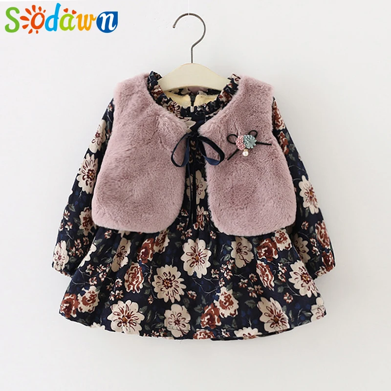 remarkable Sodawn 2019 Autumn Winter Baby Girls Clothing Long-Sleeved Floral And Velvet Dress Fashion Fur Vest
